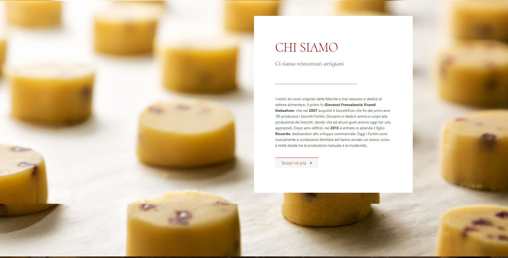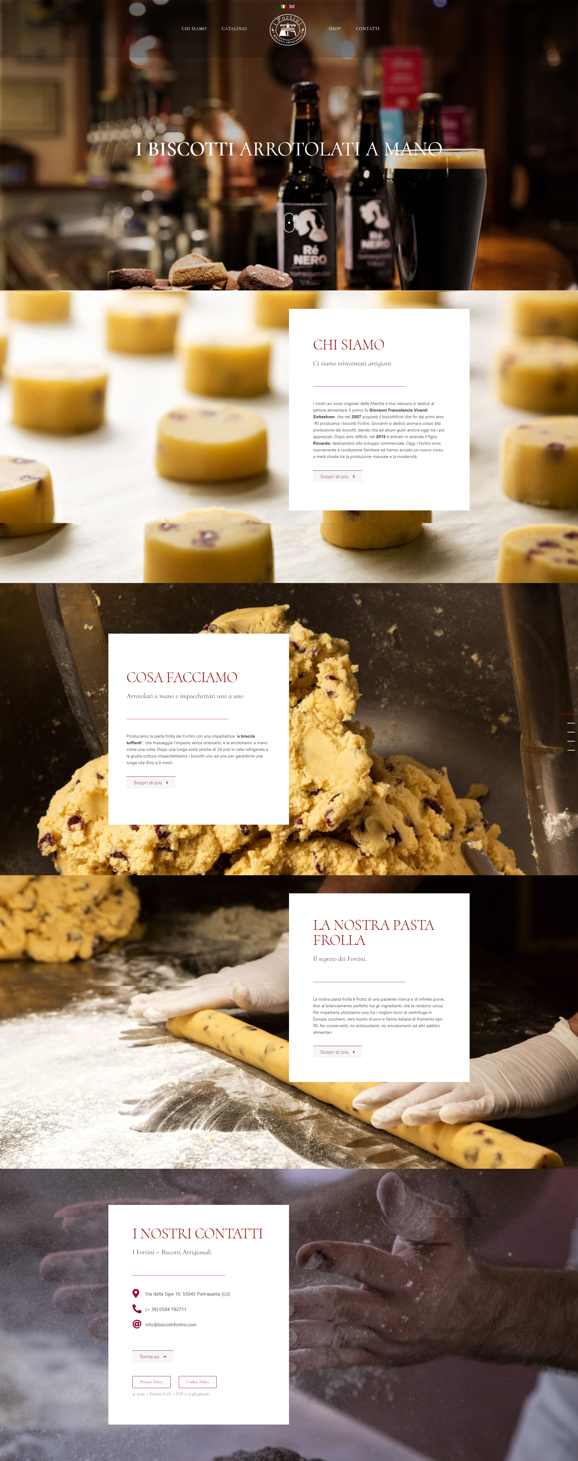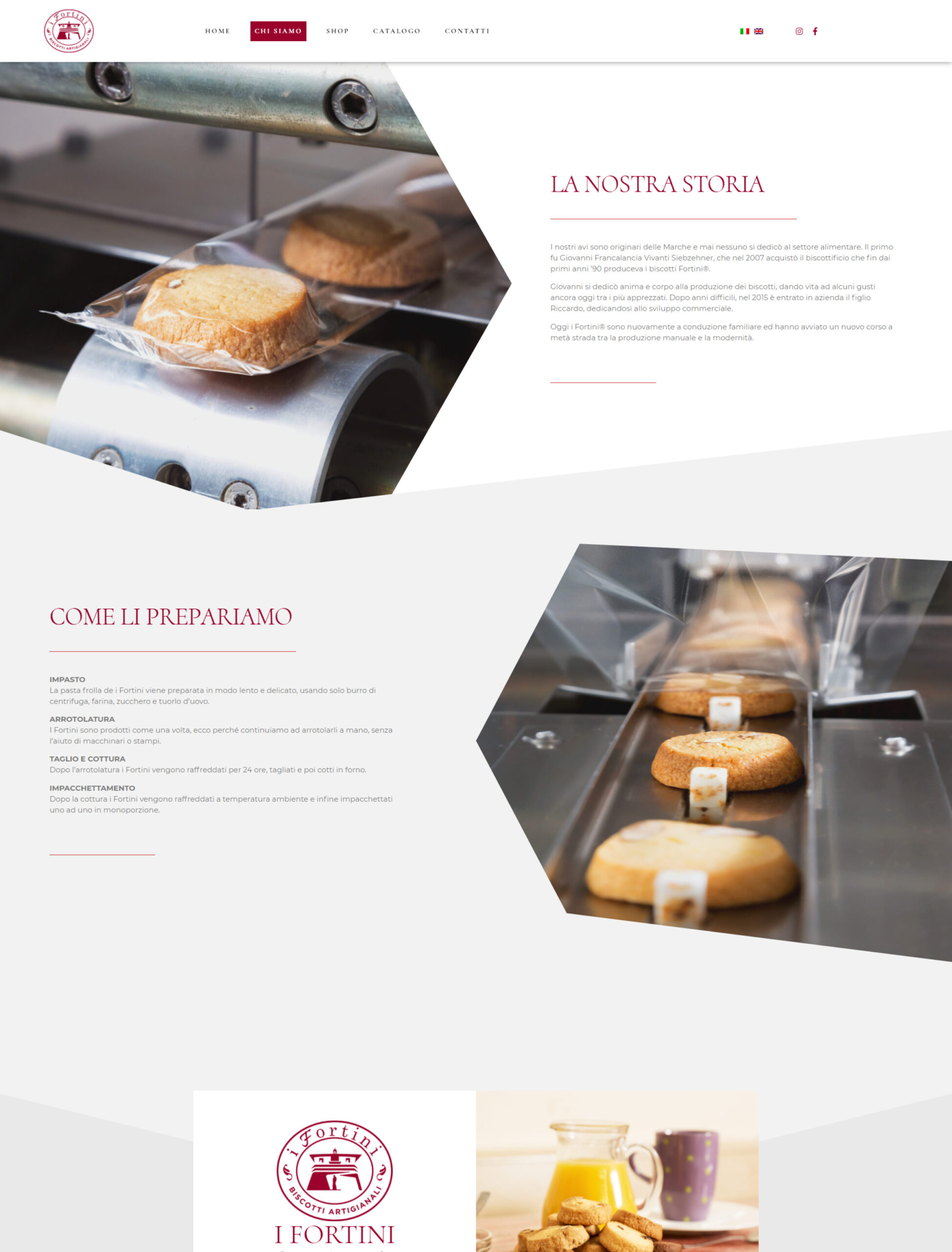 Sito realizzato per “I Fortini – Biscotti Artigianali” di Pietrasanta, Versilia. Il sito presenta un doppio sistema di navigazione, a slide-scroll per i contenuti in Homepage e un classico header in altro. Le animazioni in J-Query rendono l’esperienza più dinamica senza risultare ridondante. Il sito contiene anche una mappa interattiva dei punti vendita, mediante la quale è possibile identificare il negozio più vicino con indirizzo e indicazioni di navigazione. Per il cliente abbiamo realizzato anche un lavoro di SEO e SEM per il corretto posizionamento su Google e monitorare il flusso di utenti.