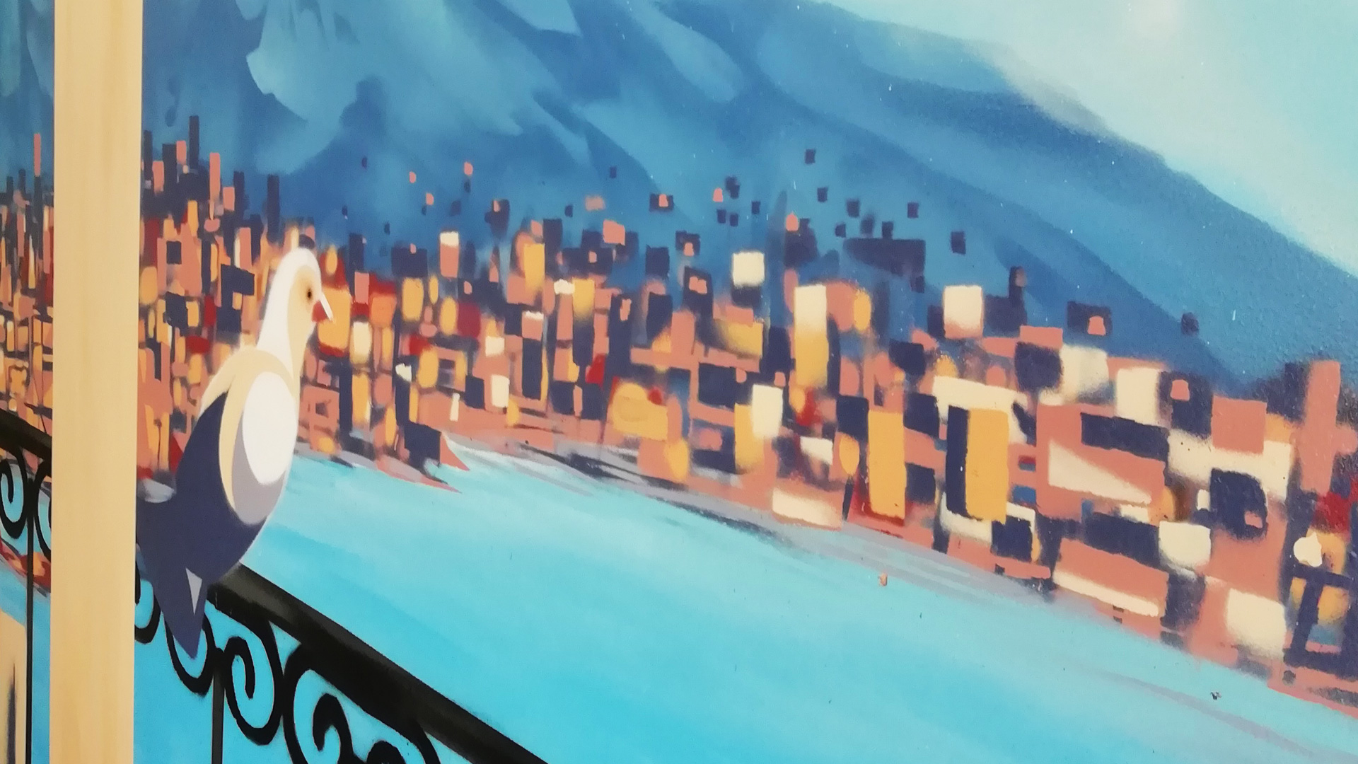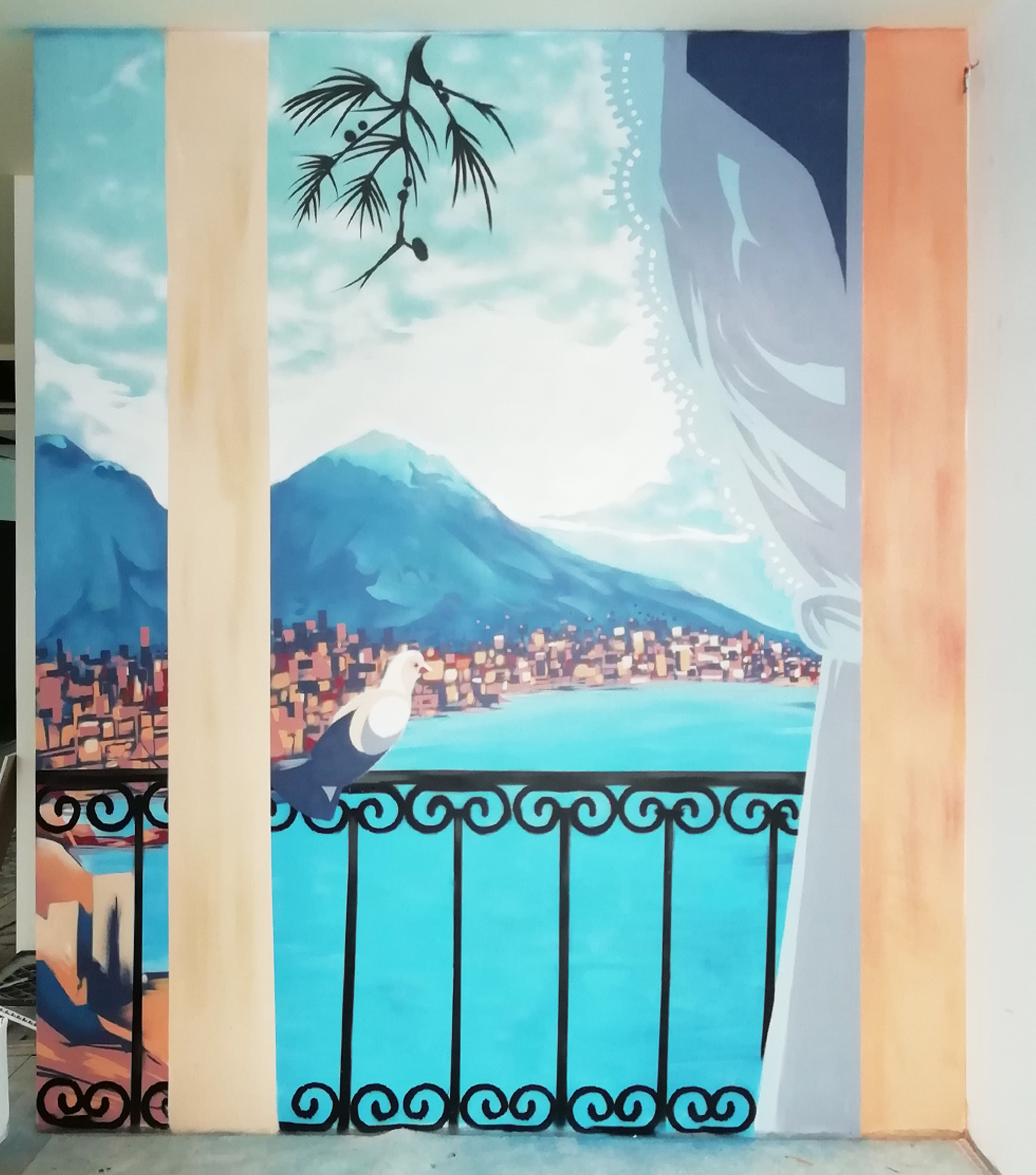 Decorazione interni realizzata utilizzando vernice spray per i locali della sede di via Pola, Milano.