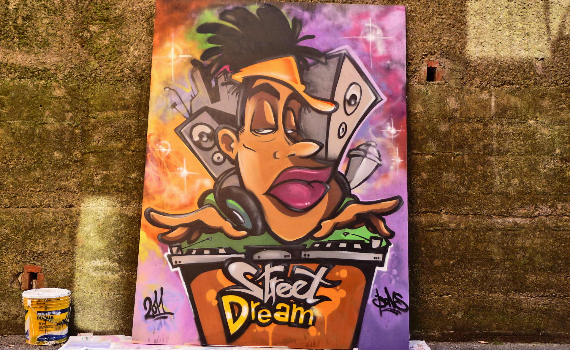 Pannello multistrato realizzato per il negozio dei abbigliamento “Street Dream” di Perugia.